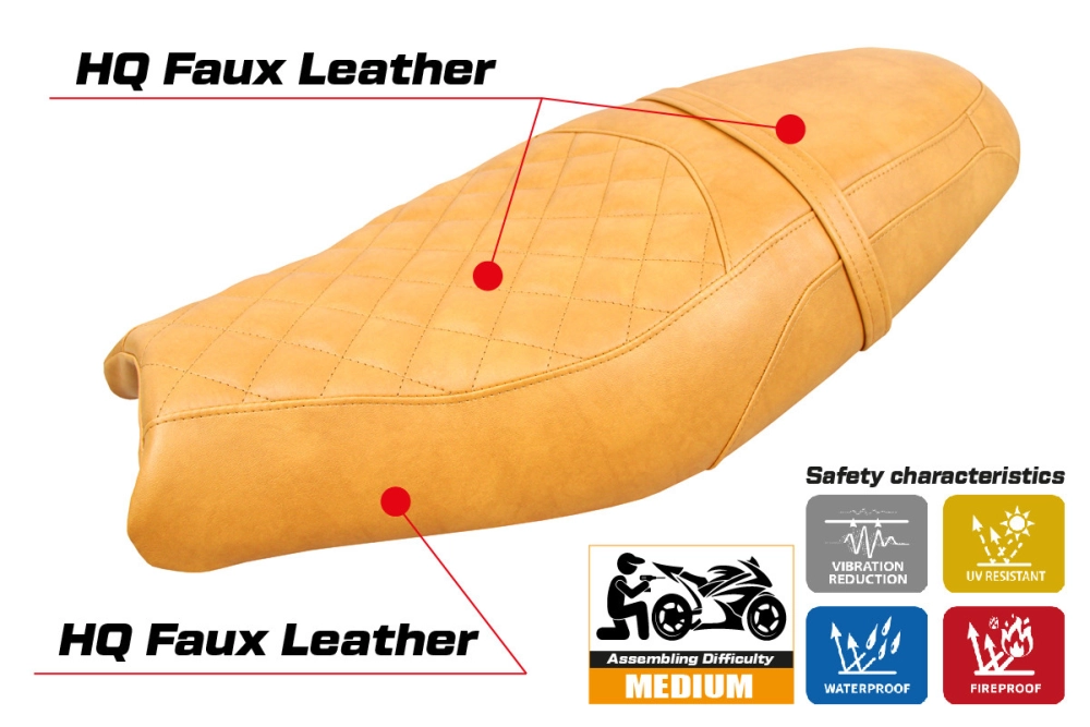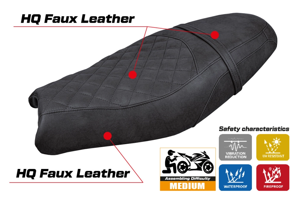 - Sistema de confort: Esta funda es, por fuera, exactamente igual a las demás fundas, pero está acoplada, por dentro, a una capa especial de 2,5 cm de espuma viscoelástica. Tappezzeria Italia es el único fabricante que utiliza la tecnología Memory Foam, que mejora el confort de conducción reduciendo la fatiga y las vibraciones de la moto.