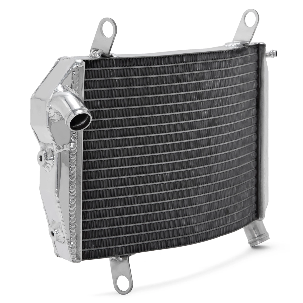 Optimice la refrigeración de su Ducati Streetfighter 848/1098 con este radiador de aluminio de alto rendimiento. Diseñado para ofrecer una refrigeración rápida y duradera, está fabricado en aluminio pulido para una disipación térmica óptima. Su núcleo soldado al váacío, sin epoxi, garantiza y mayor longevidad, incluso en condiciones extremas.