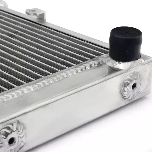 Este radiador está diseñado para proporcionar un enfriamiento rápido y eficiente, incluso en condiciones extremas. Su nucleo de aluminio está soldado al vacío, garantizando un sellado perfecto y mayor resistencia a los aumentos térmicos, especialmente en uso competitivo :