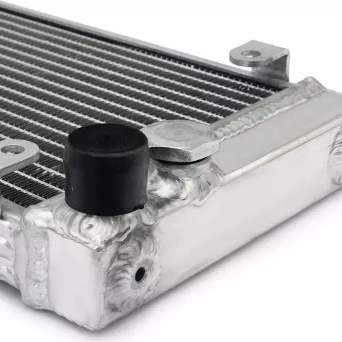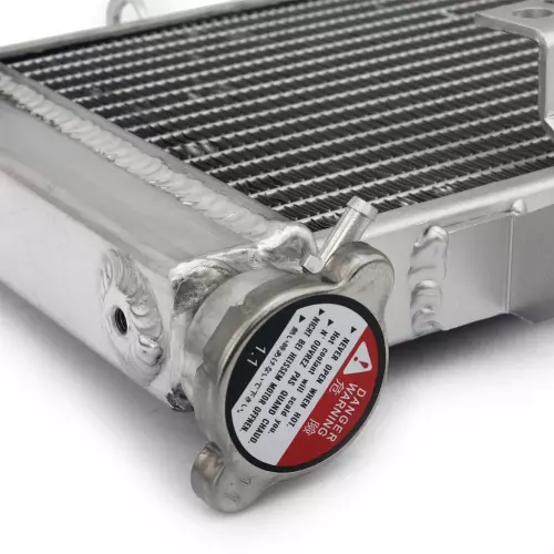 Este radiador está diseñado para proporcionar un enfriamiento rápido y eficiente, incluso en condiciones extremas. Su nucleo de aluminio está soldado al vacío, garantizando un sellado perfecto y mayor resistencia a los aumentos térmicos, especialmente en uso competitivo :