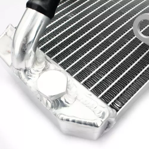 Este radiador está diseñado para proporcionar un enfriamiento rápido y eficiente, incluso en condiciones extremas. Su nucleo de aluminio está soldado al vacío, garantizando un sellado perfecto y mayor resistencia a los aumentos térmicos, especialmente en uso competitivo :