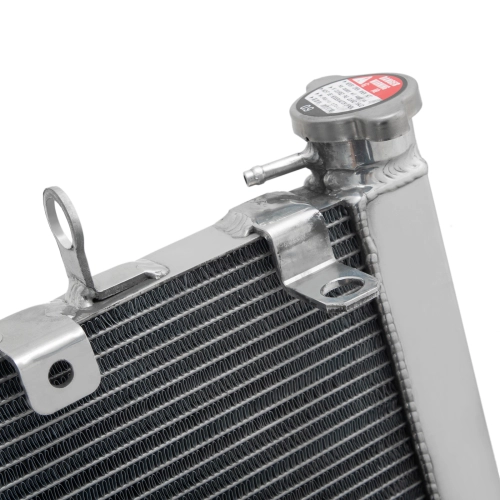 Este radiador está diseñado para proporcionar un enfriamiento rápido y eficiente, incluso en condiciones extremas. Su nucleo de aluminio está soldado al vacío, garantizando un sellado perfecto y mayor resistencia a los aumentos térmicos, especialmente en uso competitivo :