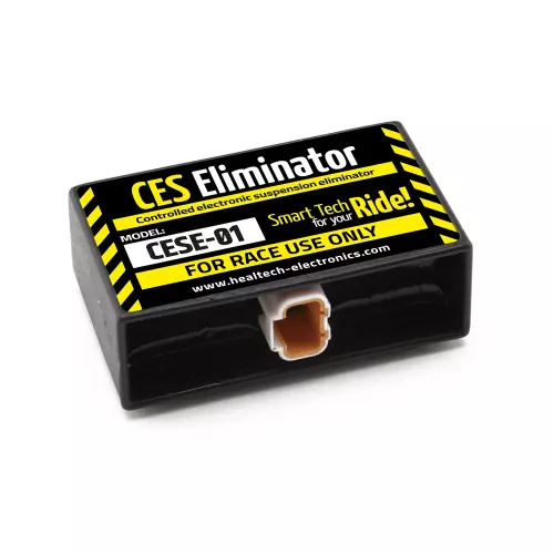 Módulo de eliminación de suspensión electrónica Healtech CESE-01. Este accesorio plug&play permite desconectar la gestión electrónica de la suspensión del arnés principal de la moto sin que aparezca un código de error FI.