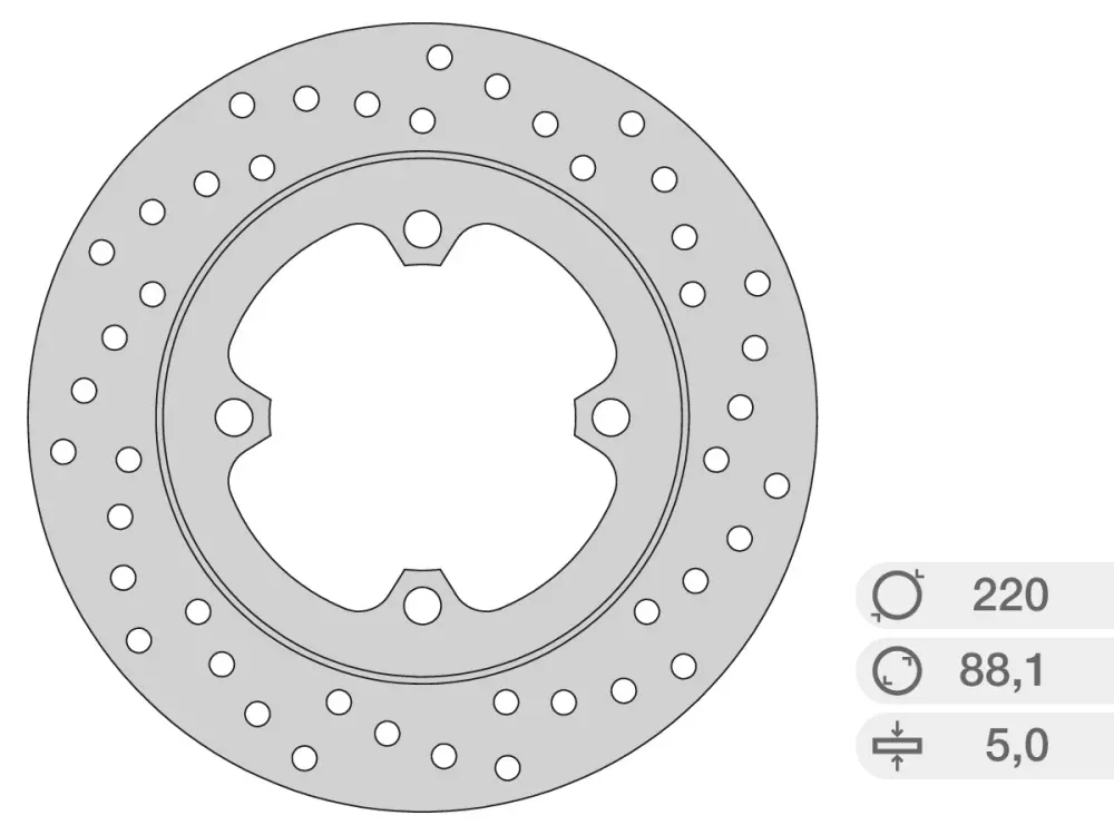 Disco de freno FEH555, diámetro exterior: 220 mm, diámetro interior: 88,1 mm, espesor: 5,0 mm.