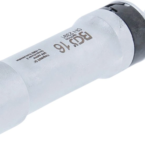 Una llave de bujía de doce caras con muelle diseñada para bujías de difícil acceso. La llave de bujía articulada de doce caras con muelle de sujeción está diseñada para facilitar el desmontaje y montaje de bujías largas, especialmente las utilizadas en motores BMW. Gracias a su articulación integrada y a su sistema de retención interno, garantiza un trabajo más seguro y preciso, incluso en los compartimentos más estrechos.