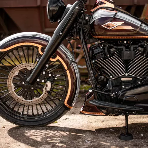 Diseñado para adaptarse a una rueda delantera de 23 pulgadas, este guardabarros le da a tu moto un aspecto custom impactante y audaz.