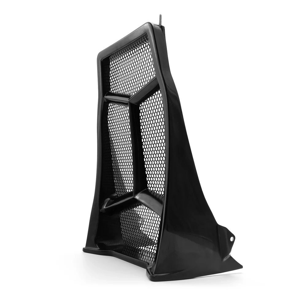 Esta pieza de montaje directo presenta una rejilla de panal negra con recubrimiento en polvo, aportando líneas agresivas a tu moto.