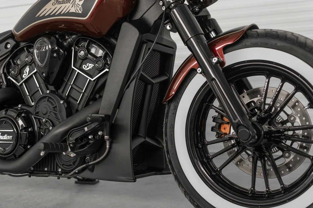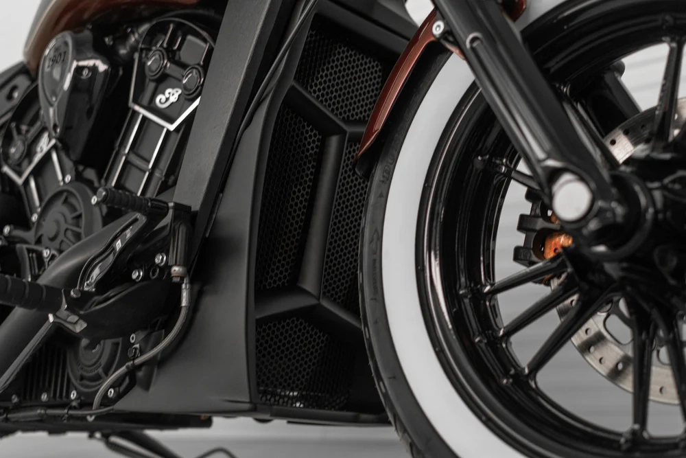 Mejora tu Indian Scout con nuestra cubierta de radiador de la serie "Apache".