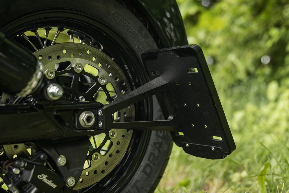 El nuevo soporte lateral para matrícula, mecanizado por CNC, está diseñado para adaptarse a nuestros soportes personalizados o a cualquier soporte estándar. Se instala en el lado izquierdo del eje trasero. Fabricado en aluminio mecanizado por CNC y con soporte pintado en negro con pintura en polvo, es totalmente compatible con nuestros soportes de matrícula de tamaño personalizado. Los soportes personalizados se venden por separado según el tamaño de tu matrícula.