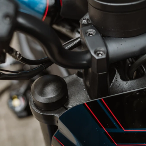 Diseñamos estos tapones de tubo de horquilla para cubrir los pernos superiores. Fabricados en aluminio macizo mecanizado por CNC con un acabado en pintura negra, le darán a tu horquilla delantera un aspecto más agresivo.
