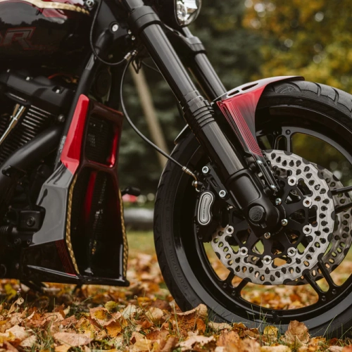 Los nuevos tapones inferiores exclusivos con ranuras. Toda la horquilla parece lisa, ya que los tubos cromados están cubiertos. Tu horquilla tendrá un aspecto completamente negro, creando una estética completamente nueva para tu Softail FXDR 114.