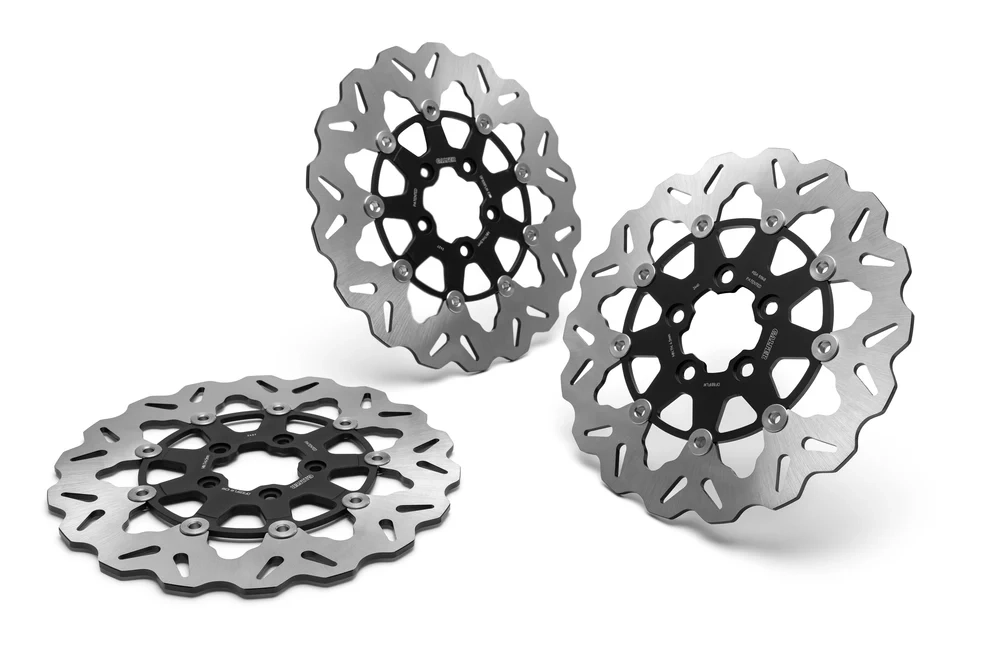 Solo vendemos los mejores discos de freno de alto rendimiento, fabricados en acero inoxidable 420 de alto carbono, cortados con láser y rectificados dos veces. Estos discos de reemplazo directo se ajustan como los originales y presentan un diseño completamente flotante con un centro de aluminio/ acero para mejorar la sensación y el control de los frenos. El diseño WAVE® enfría los discos al girar, reduciendo las temperaturas de funcionamiento, mientras que la función autolimpiante ayuda a eliminar el agua. Tratados térmicamente de forma individual y más ligeros que los originales, estos discos resisten la deformación y ofrecen un rendimiento de alto nivel en condiciones extremas. El kit incluye dos discos de freno delanteros (11,8") y un disco de freno trasero (11,5").