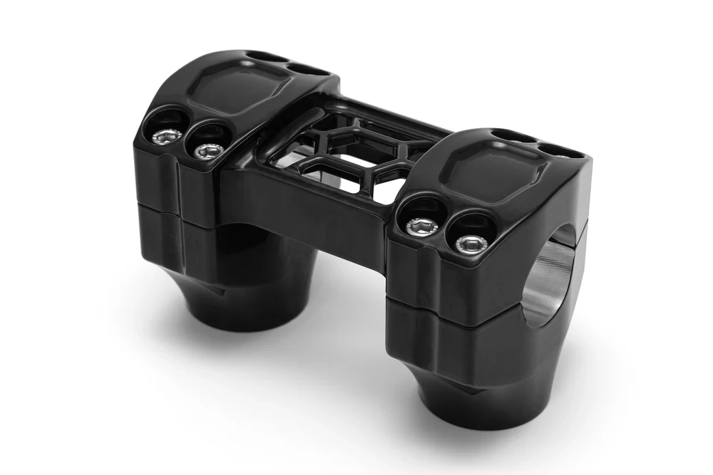 Descubre nuestros nuevos elevadores de manillar Killer Custom para Softail! Después de revolucionar el mundo de los manillares personalizados, volvemos con estos elevadores de 2". Diseñados para zonas de montaje de manillar de 1¼", puedes elegir el ajuste perfecto. Fabricados en aluminio de alta calidad 7075, están hechos para durar. Disponibles en negro brillante o acabado en bruto, vienen en un kit completo con tornillos de acero inoxidable e instrucciones fáciles de seguir. Perfectamente compatibles con nuestras barras “Killer Bull” o “Monarch”, se ajustan igual que los elevadores originales de Harley-Davidson.