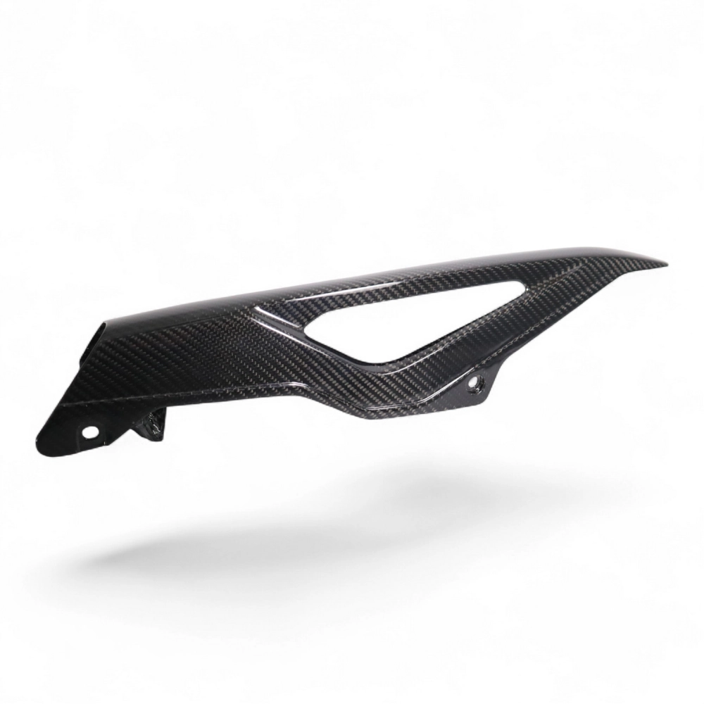 Protector de cadena en carbono HONDA CB750 Hornet 2023+, se entrega sin tornillos ni otras fijaciones. Los agujeros ya están perforados en los carenados de carbono de las motos. Las piezas están disponibles en barniz brillante o mate.