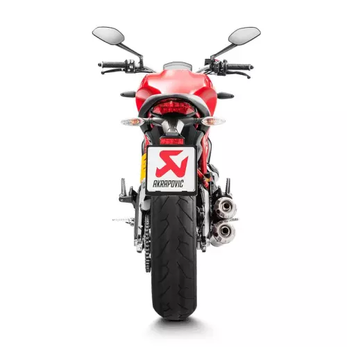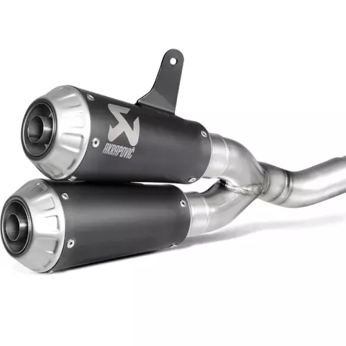 Los colectores opcionales de acero inoxidable o titanio (se venden por separado) permiten la actualización a un sistema de escape completo cuando se combinan con un silencioso slip-on Akrapovic. Los tubos de enlace opcionales de acero inoxidable o titanio (se venden por separado) también se pueden combinar con los silenciosos slip-on Akrapovic. Los soportes de silencioso y protectores de calor de fibra de carbono están disponibles por separado para ciertos modelos.