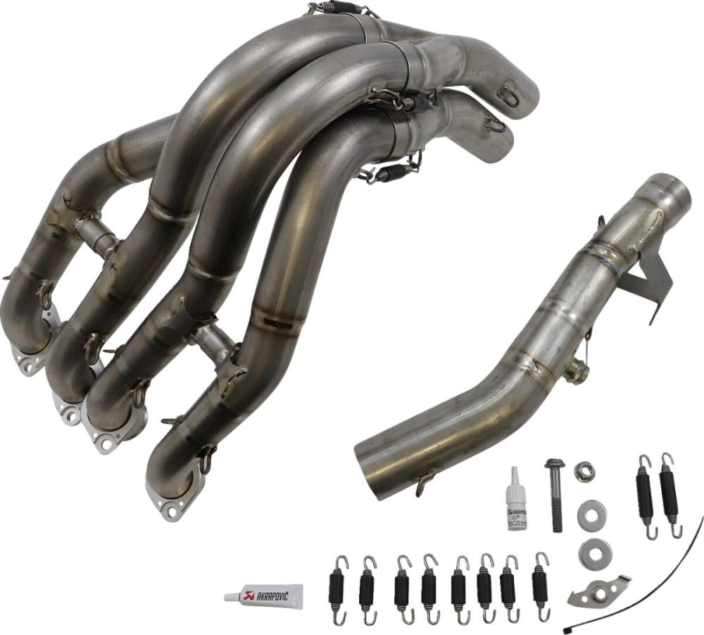 Colector de titanio Akrapovic 4 en 1 para Kawasaki Ninja ZX-10RR/10R 21-23. Para lograr un rendimiento, una respuesta del acelerador y una durabilidad óptimos, es esencial un nuevo mapeo de la ECU.