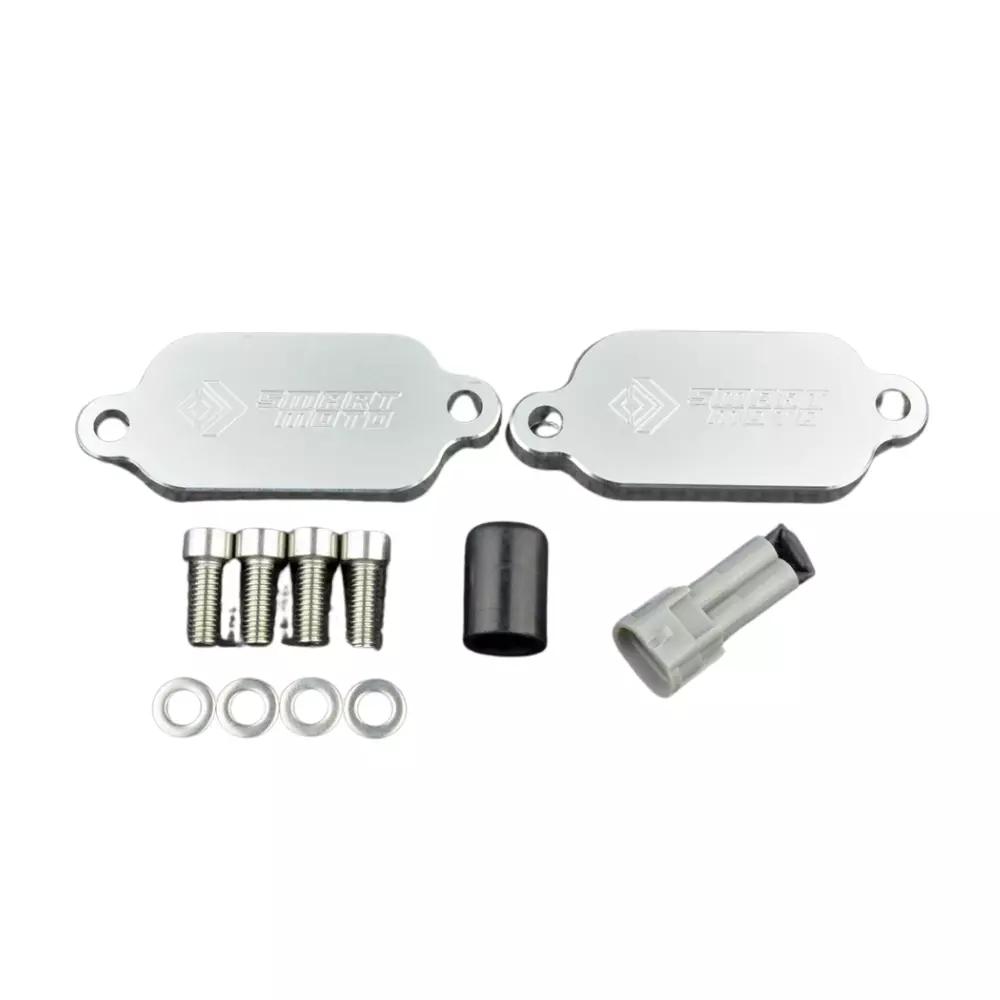 El kit de supresión de emisiones SmartMoto se compone de piezas mecanizadas CNC (las placas ciegas), combinadas con kits completos SmartMoto que proporcionan todos los componentes que necesita para eliminar el sistema de aire secundario.