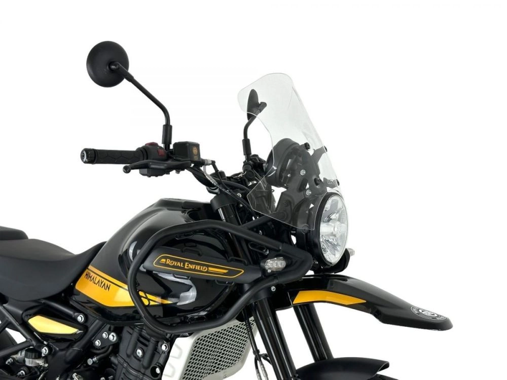 Parabrisas transparente WRS Touring Royal Enfield HIMALAYAN 450 fabricada en plexigl ás PMMA de alta calidad. Elimina las molestas turbulencias en los hombros y el casco. Mayor protección gracias a la Parabrisas. Se integra perfectamente con la línea de la motocicleta para una apariencia aún m ás atractiva.