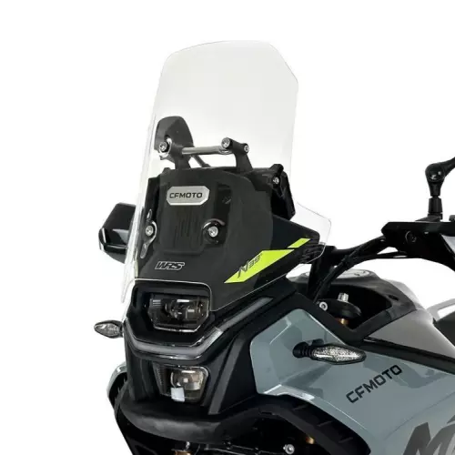 Parabrisas Touring WRS CF MOTO 450M Transparente. Fabricada con materiales de alta calidad y 3 mm de grosor, cumple con los m ás estrictos est ándares de seguridad y artesanía, garantizando m áxima resistencia y transparencia. La versión Touring del WRS es 7 cm m ás alta y 3 cm m ás ancha que la original. Gracias a esta Parabrisas, se eliminan las molestas turbulencias en el casco y el flujo de aire en los hombros, garantizando una protección óptima incluso en viajes largos. Gracias a la mayor protección que ofrece la Parabrisas Touring, el pasajero también disfruta del viaje con la m áxima comodidad. Su diseño, estudiado al detalle, se integra a la perfección con la línea de la motocicleta y le confiere un aspecto aún m ás atractivo.