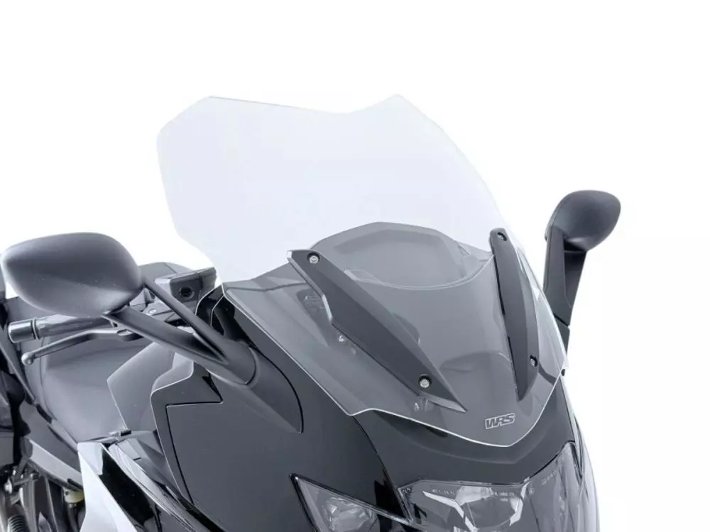 Parabrisas WRS Standard para BMW K 1600, transparente. Parabrisas original: L 55 cm x H 52,5 cm. El parabrisas WRS Standard mide: L 59,5 cm x H 54,5 cm y est á fabricado en plexigl ás PMMA de alta calidad con 5 mm de grosor. Gracias a este parabrisas, se eliminan las molestas turbulencias en el casco y el aire en los hombros, garantizando una protección óptima incluso en viajes largos. Versión est ándar, con la misma altura que el original, ligeramente m ás ancha, ideal para conductores de estatura media y alta. Su diseño, cuidado hasta el último detalle, se integra a la perfección con las líneas de la motocicleta.