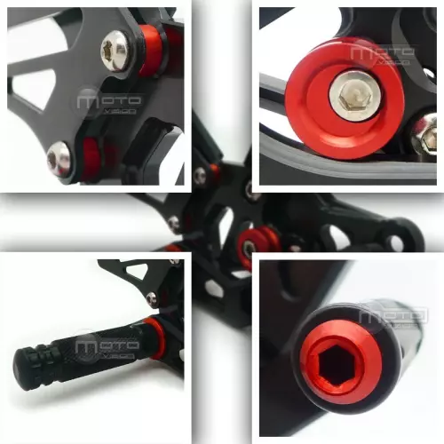Cada producto Kaylosa está diseñado para ajustarse a modelos específicos de motocicletas para garantizar una fácil instalación y un uso óptimo. Los mandos traseros ya están montados en un 80% para facilitar su instalación. La rigidez del producto mejora gracias a un peso igual o superior a 900 g correctamente distribuido. La puntera de teflón reduce en gran medida el riesgo de cortes en caso de caída.