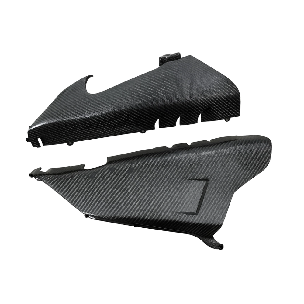Paneles inferiores (versión AK) carbono Ducati Panigale V4/V4S 2025, se entrega sin tornillería. Orificios pre‑taladrados en las piezas de carbono.