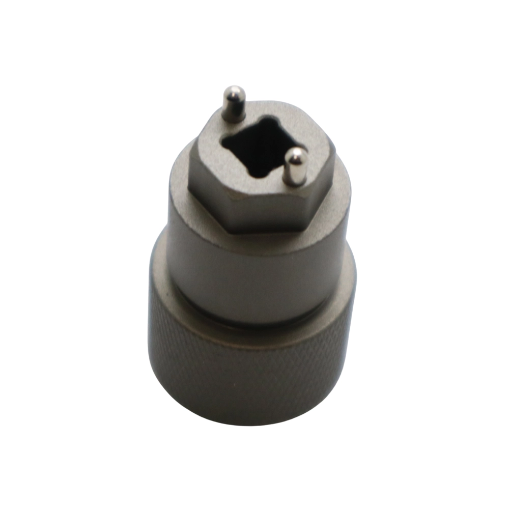 Juego de herramientas para abrir, drenar y revisar amortiguadores de dirección Hyperpro. Permite cambiar juntas, rellenar aceite y purgar correctamente.