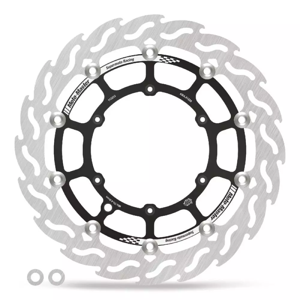 - La placa de soporte interna es una pieza de aluminio anodizado, y el grosor del disco se ha aumentado a 5 mm, superando el de los discos Moto-Master Supermoto estándar.