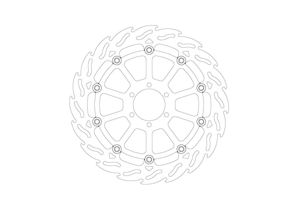 El disco de freno Moto Master Flame Black Aluminum Carrier 320 mm ranurado 6 agujeros 112445 le ofrece una frenada potente y regular, con una excelente disipación del calor.