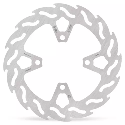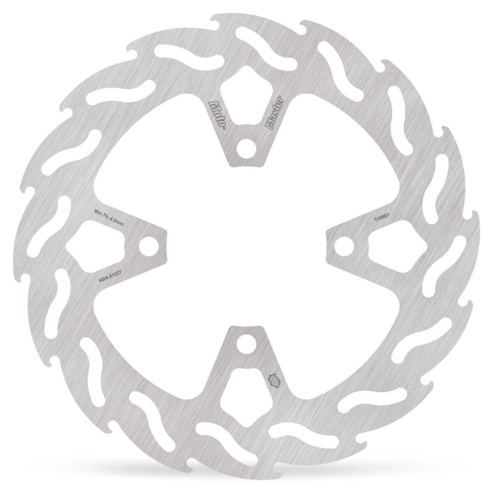 El disco de freno Moto Master Flame 245 mm fijo (Solid-Mount) perforado 4 agujeros 110981 le ofrece una frenada potente y regular, con una excelente disipación del calor.