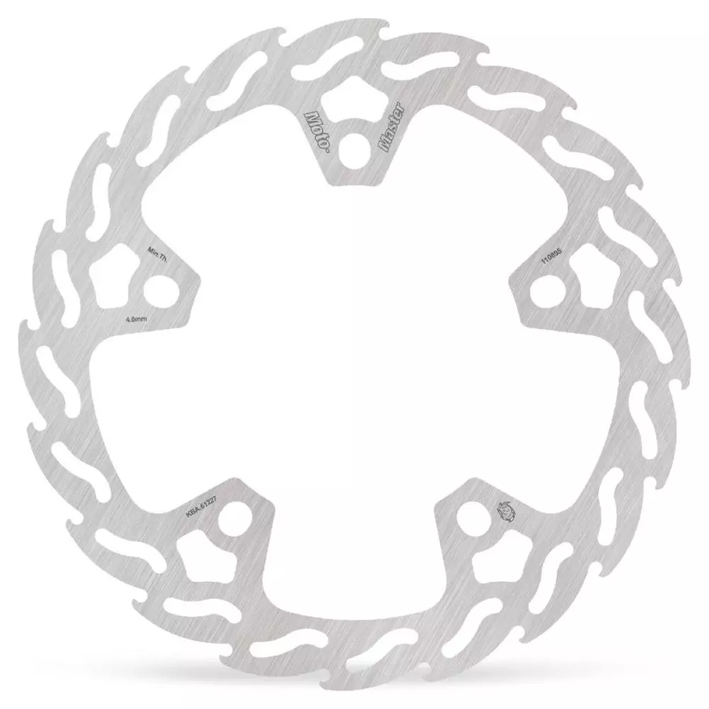 El disco de freno Moto Master Flame 320 mm fijo (Solid-Mount) perforado 5 agujeros 110895 le ofrece una frenada potente y regular, con una excelente disipación del calor.