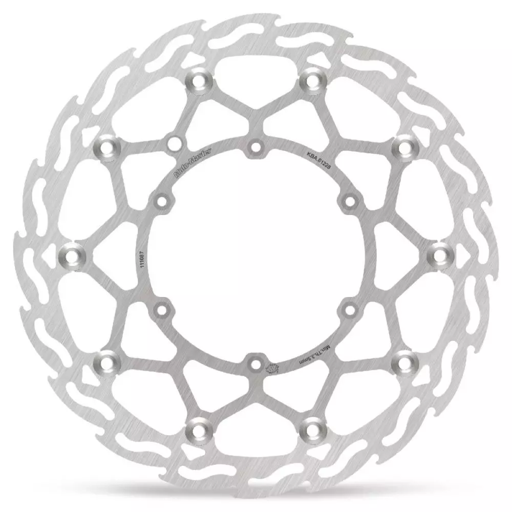 El disco de freno Moto Master Flame 320 mm fijo (Solid-Mount) ranurado 6 agujeros 111087 le ofrece una frenada potente y regular, con una excelente disipación del calor.