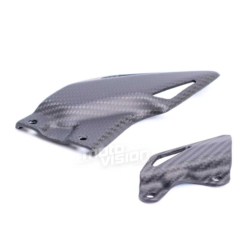 Reposapiés en carbono Honda CBR 1000 2008-2018 que se monta directamente en los puntos de fijación originales de su moto para sustituir el carenado original. Las piezas de carbono se entregan sin tornillos ni pernos.
