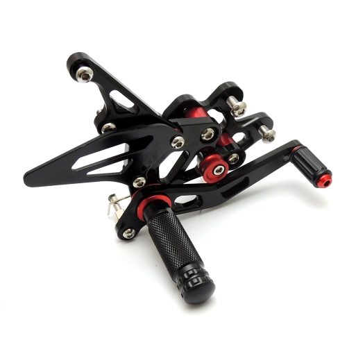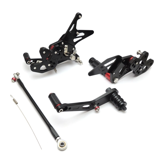 Los Suzuki GSXR 600 2011-2018 striberas ajustables CNC racing tienen una palanca ajustable individualmente con 8 a 10 ajustes según el modelo y placas con un acabado anodizado negro mate. Tienen 2 posiciones para el pedal de cambio/freno.