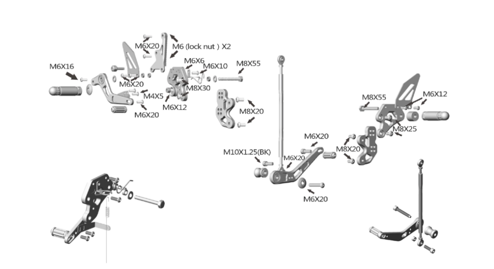 Cada producto Kaylosa está diseñado para ajustarse a modelos específicos de motocicletas para garantizar una fácil instalación y un uso óptimo. Los mandos traseros ya están montados en un 80% para facilitar su instalación. La rigidez del producto mejora gracias a un peso igual o superior a 900 g correctamente distribuido. La puntera de teflón reduce en gran medida el riesgo de cortes en caso de caída.