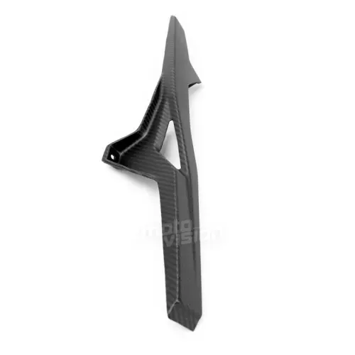 Guide chaine Carbone Aprilia Dorsoduro 750/900/1200, livré sans visserie ou autres fixations. Les perçages sont déjà effectués sur les carénages moto en carbone.