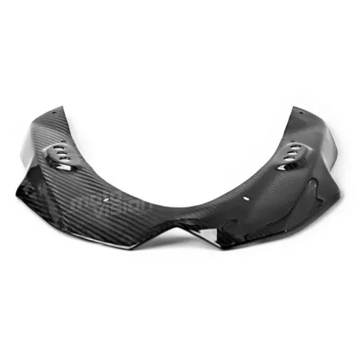 Partie suppérieure de tête de fourche carbone GSXR 1000 2009-2015 à monter directement sur les points de fixation d'origine de votre moto en remplacement du carénage d'origine. Les pièces en carbone sont livrées sans visserie.