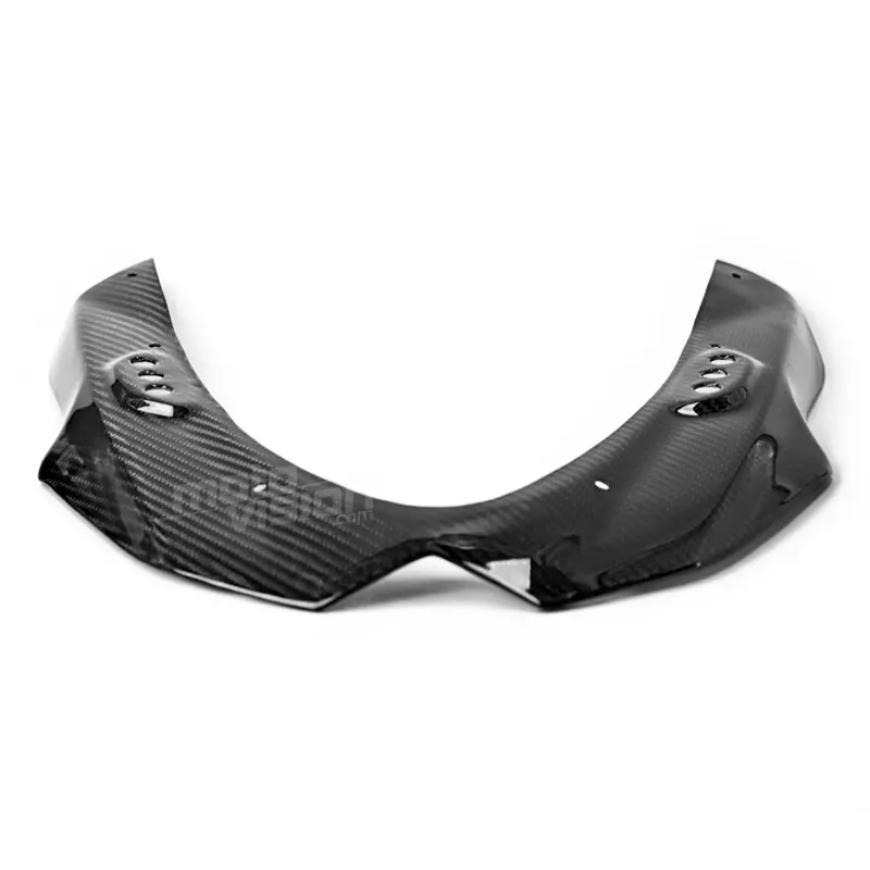 Partie suppérieure de tête de fourche carbone GSXR 1000 2009-2015, livré sans visserie ou autres fixations. Les perçages sont déjà effectués sur les carénages moto en carbone.