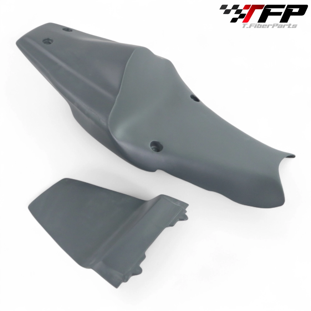 - 2 propositions pour les coques arrière : 1 coque fermée pour rouler sur la piste avec collage d'une mousse de selle ou 1 coque qui conserve la selle d'origine pour la plupart des motos