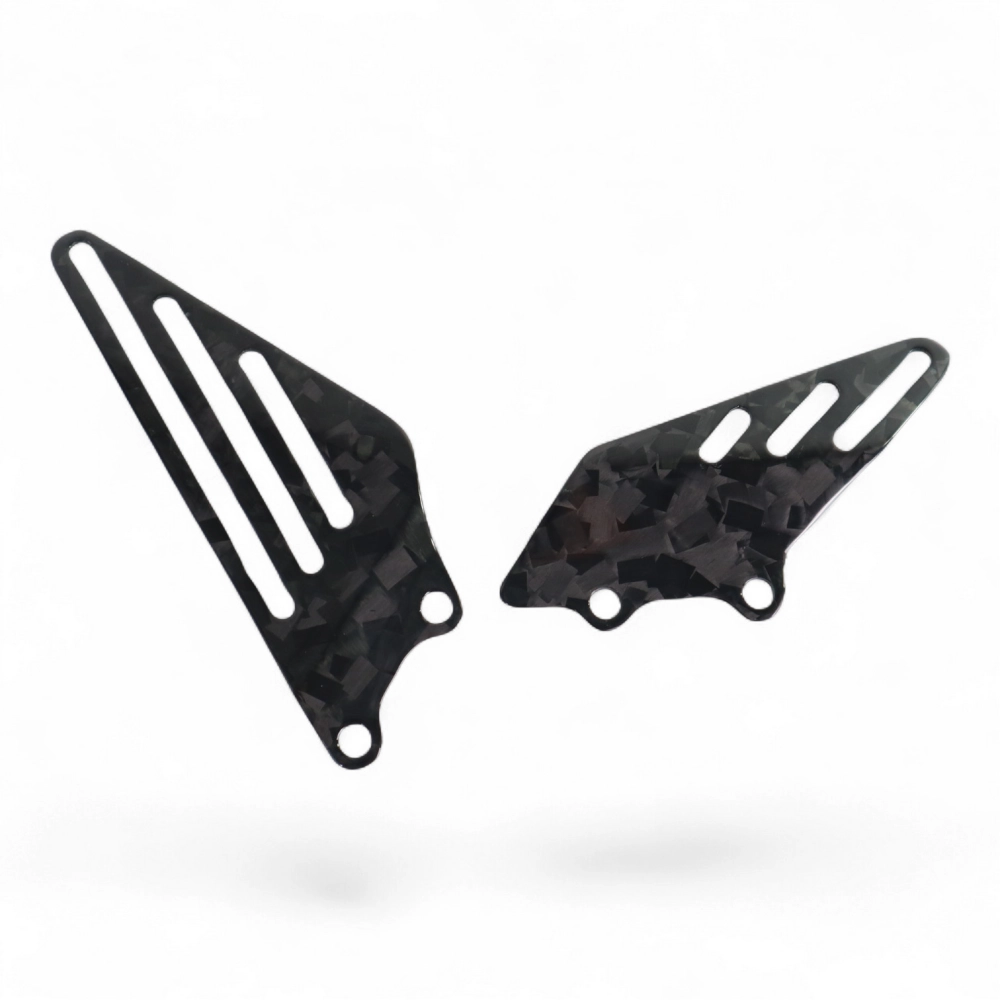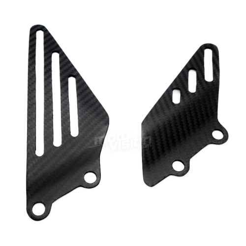 Paire de reposes pieds carbone Kawasaki ZX14 ZZR 1400, livré sans visserie ou autres fixations. Les perçages sont déjà effectués sur les carénages moto en carbone.