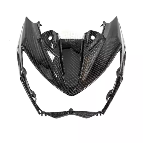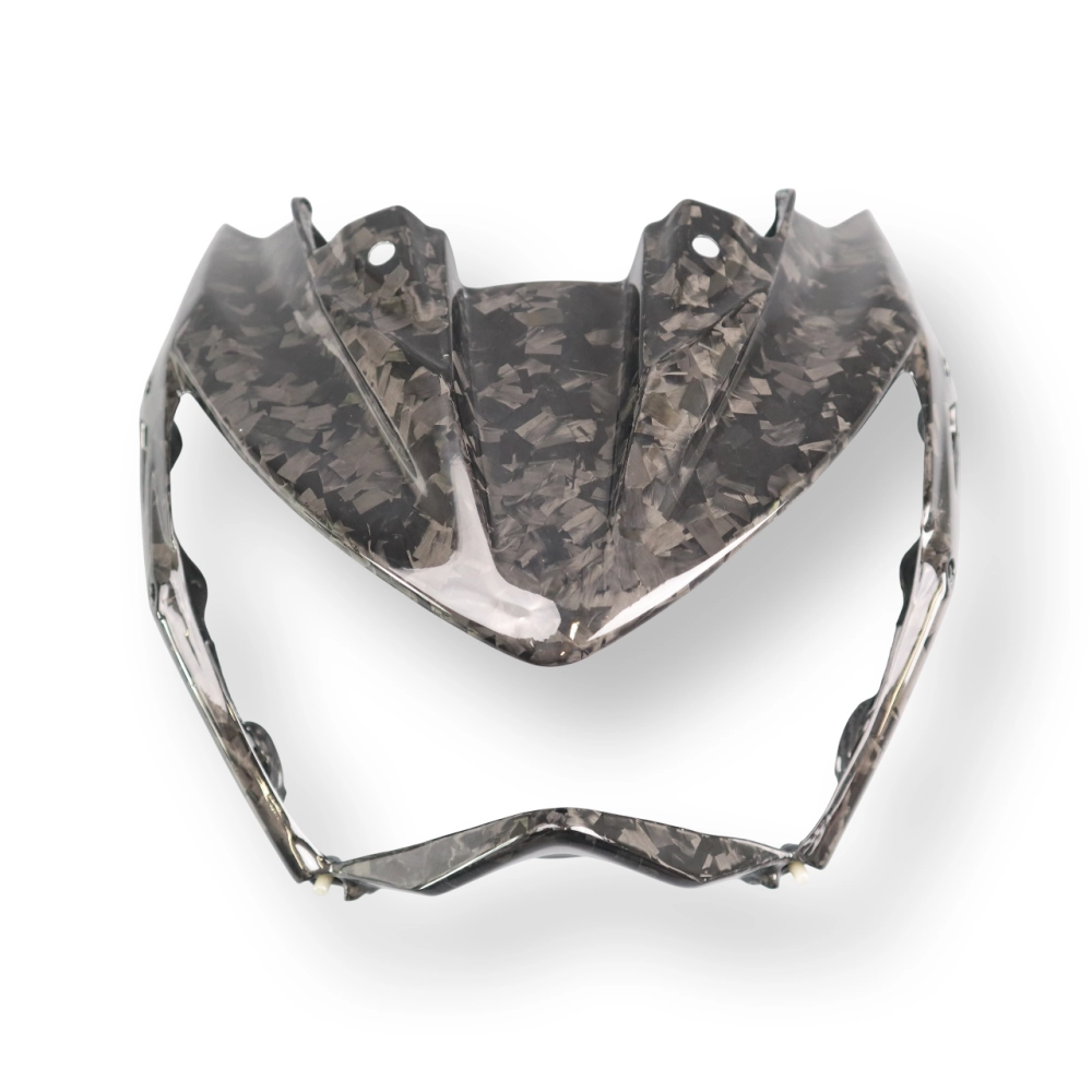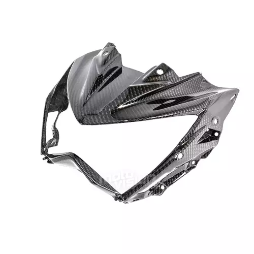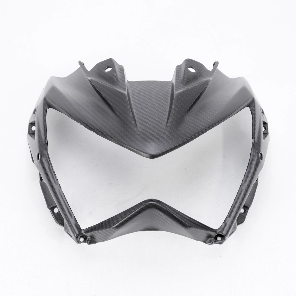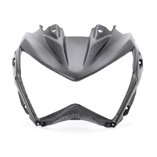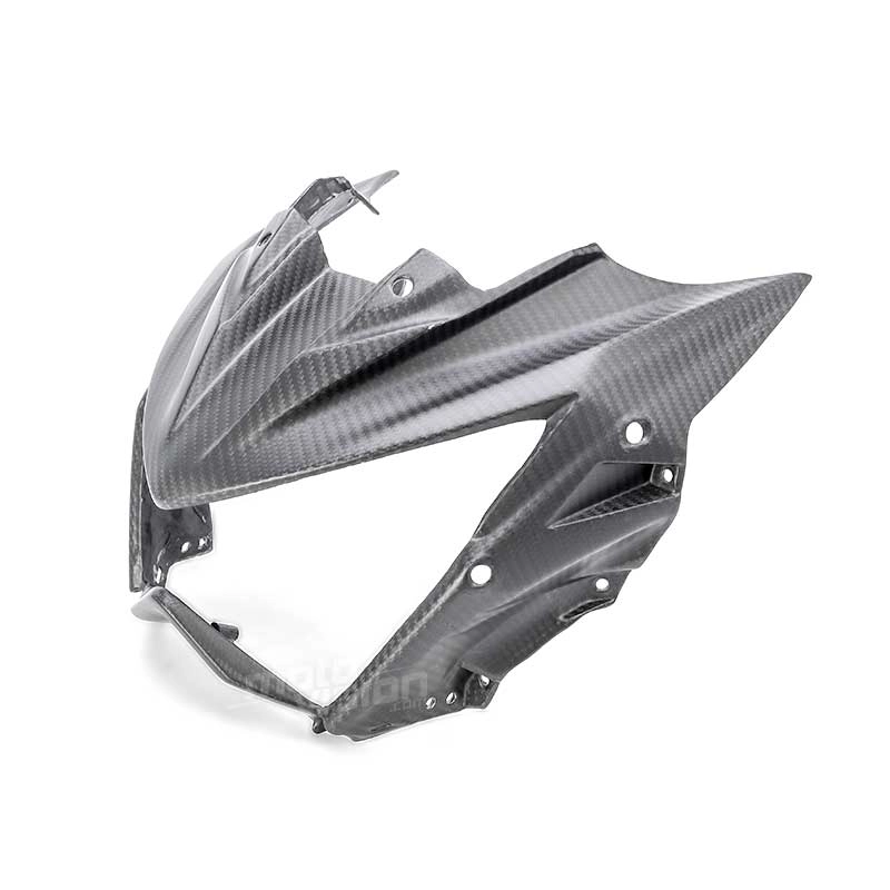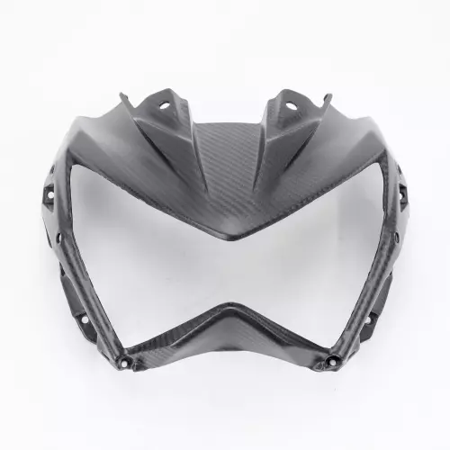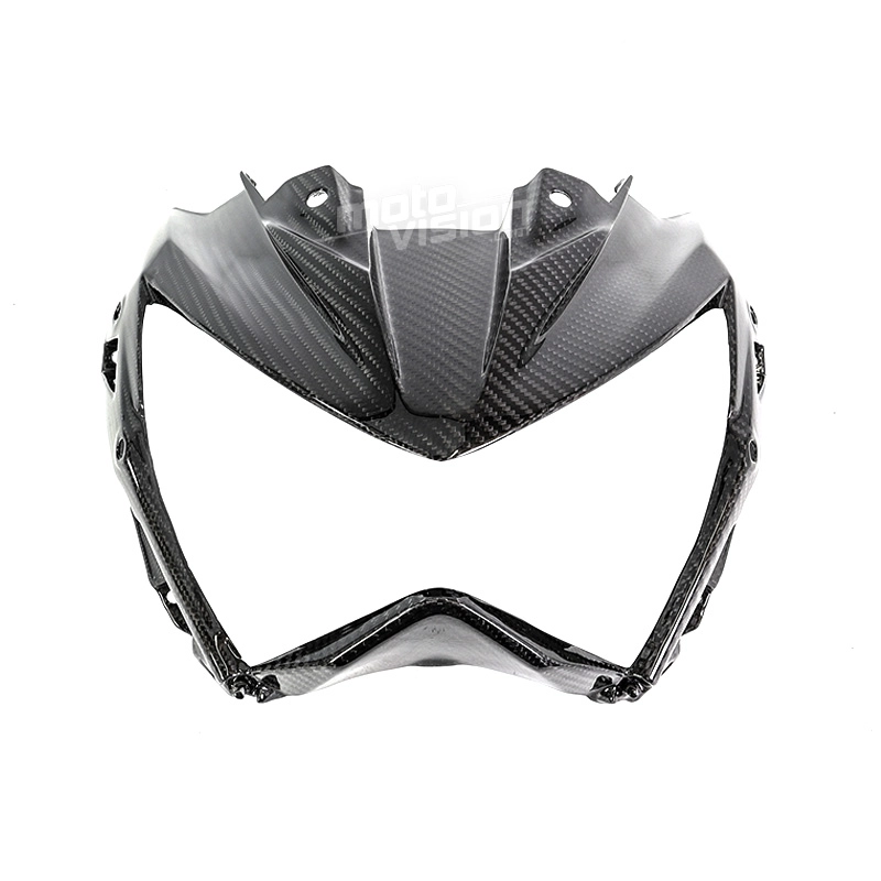 Tête de fourche carbone Kawasaki Z800 2013-2016 à monter directement sur les points de fixation d'origine de votre moto en remplacement du carénage d'origine. Les pièces en carbone sont livrées sans visserie.
