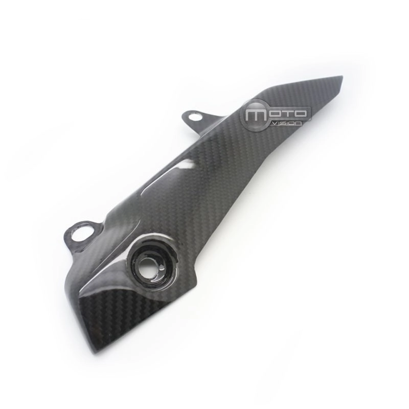 Cache ligne Carbone Triumph Daytona 675 2013-2016, livré sans visserie ou autres fixations. Les perçages sont déjà effectués sur les carénages moto en carbone.