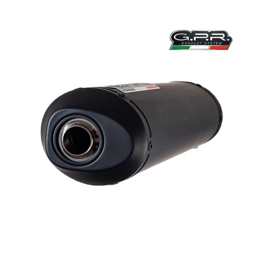 Le silencieux Ghisa de GPR possède une finition peinte en noir qui résiste aux températures élevées. Il a une forme ovale qui mesure 90 mm x 120 mm. Plus légère que l'échappement d'origine, une ligne d'échappement GPR permet également une hausse significative des performances, sans compter un gain de poids.
