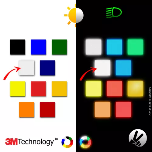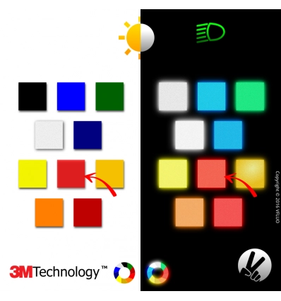 Les feuilles VFLUO 3M REFLECTIVE COLORS™, le meilleur matériau réro réfléchissant de couleur existant sur le marché.
