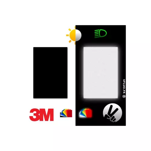 Ce kit VFLUO intègre la technologie 3M™. De belles couleurs vives (et un noir pur pour le noir) le jour, et la lumière des phares des voitures renvoyée vers le conducteur la nuit.