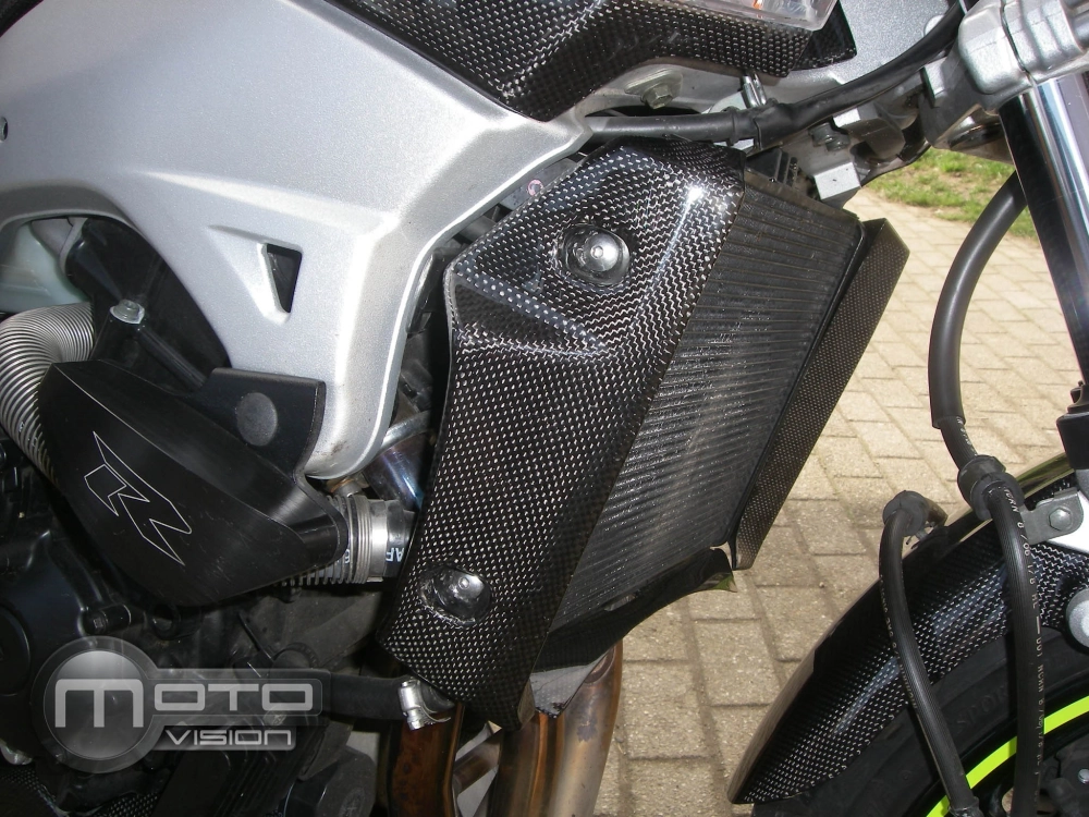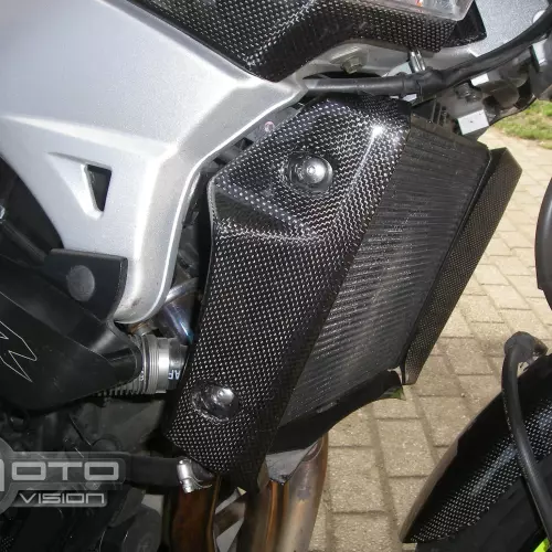 Paire d'ecopes radiateur carbone Suzuki GSR 600 2006-2011 à monter directement sur les points de fixation d'origine de votre moto en remplacement du carénage d'origine. Les pièces en carbone sont livrées sans visserie.