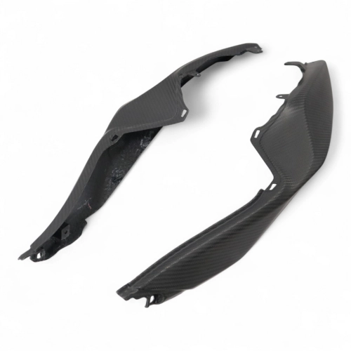 Paire de flancs de coque carbone Kawasaki ZX6R 636 2013-.., livré sans visserie ou autres fixations. Les perçages sont déjà effectués sur les carénages moto en carbone.