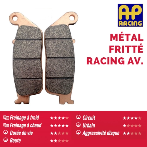 La marque anglaise AP Racing est spécialiste du freinage haute performance. Reconnue par les motards du monde entier pour ses produits de qualité, la gamme de plaquettes de frein AP Racing comprend 5 types de matériaux et 15 formes de plaquettes. Elle vous offre entière satisfaction en convenant aussi bien aux pistards exigeants, qu'aux amateurs de ballade sur route ou d'off road.