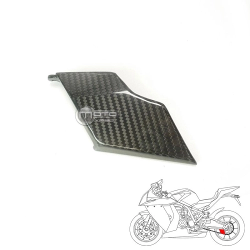 Guide chaine bas Carbone KTM RC8 R, livré sans visserie ou autres fixations. Les perçages sont déjà effectués sur les carénages moto en carbone.