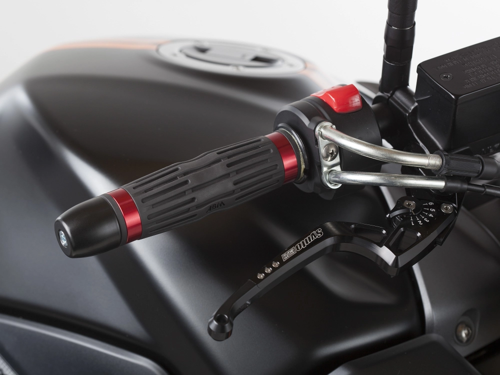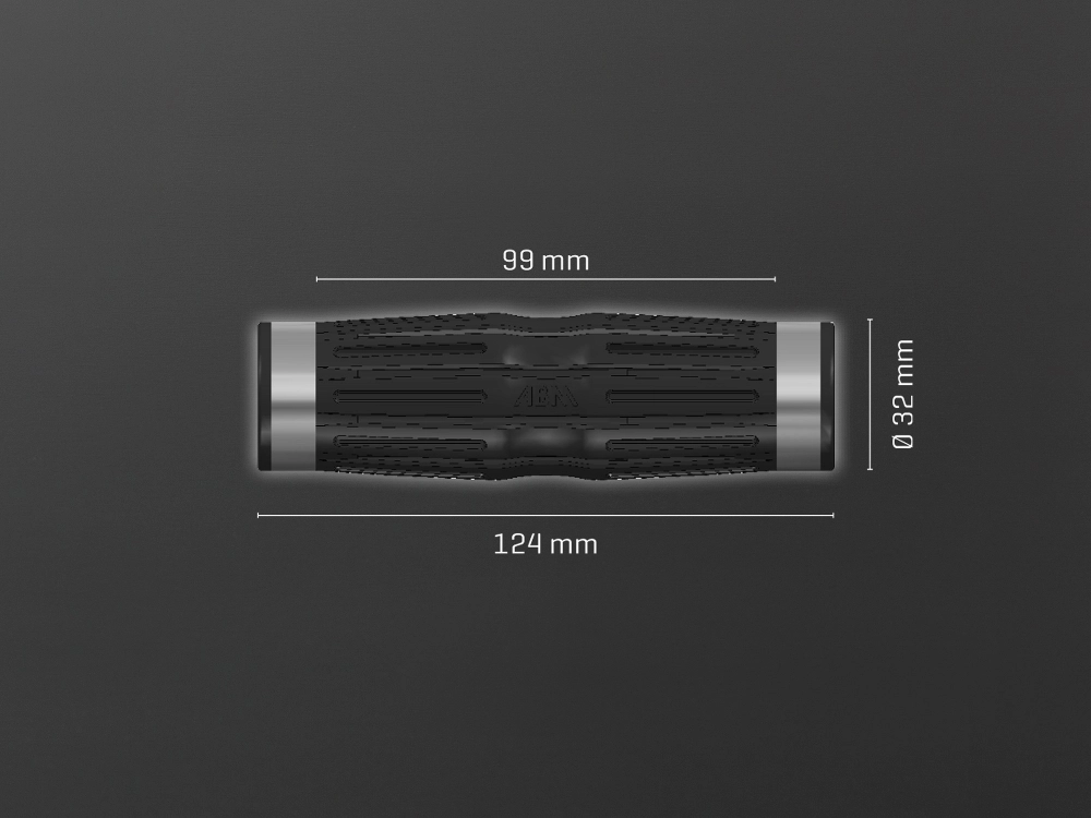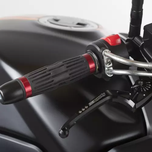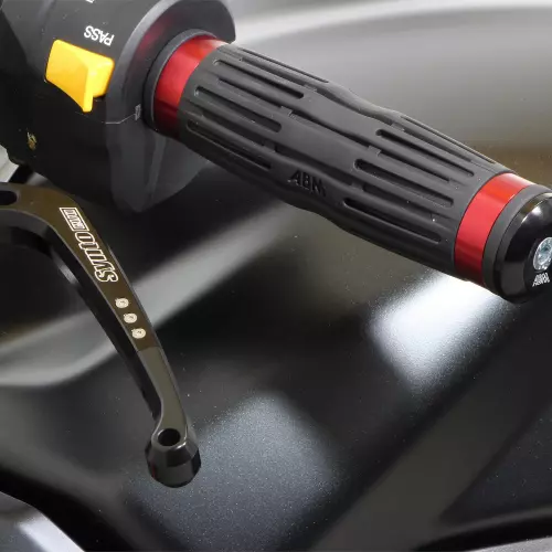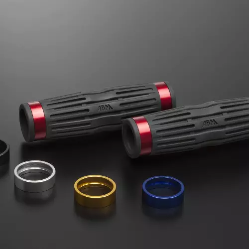 Paire de poignées ergonomique en aluminium de la marque ABM, disponible en 5 coloris. Ce modèle s'adapte à un grand nombre de motos avec un guidon de 22 mm.